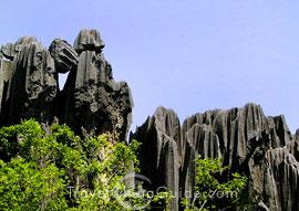 The Stone Forest is in Lunan Yi Nationality Autonomous County, which is about 120 kilometers (75 miles) from Kunming and requires only a three-hour drive. It covers an area of 400 square kilometers (96,000 acres) and includes both large and small stone forests, as well as many other scenic spots. An old local saying says that "If you have visited Kunming without seeing the Stone Forest, you have wasted your time." Truly, the Stone Forest is one of the most important attractions of Yunnan.